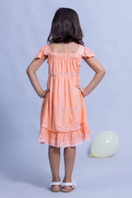 Pink Cotton, Voile Embroidery Floral Pattern Schiffli Dress