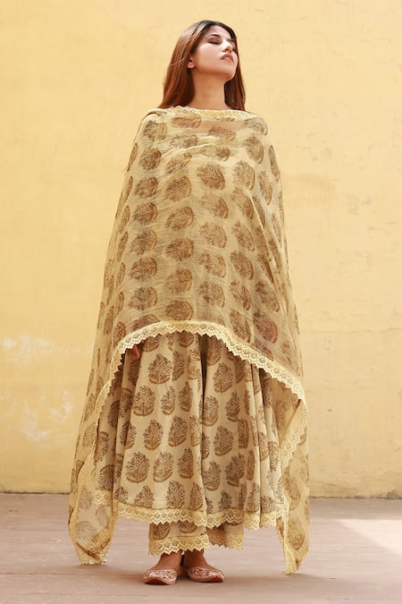Buy_Gulabo Jaipur_Beige Cotton Floral Boat Print Anarkali Set _at_Aza_Fashions