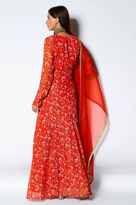Buy_Rishi and Vibhuti_Red Georgette Floral Print And Sequin V Neck Anarkali With Dupatta_Online_at_Aza_Fashions