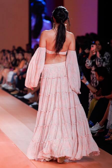 Buy_Arpita Mehta_Beige Georgette Embroidery Sweetheart Neck Floral Print Blouse And Skirt Set_Online_at_Aza_Fashions