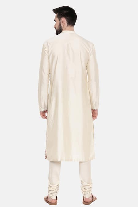 Beige Silk/chanderi Floral Print Kurta Set