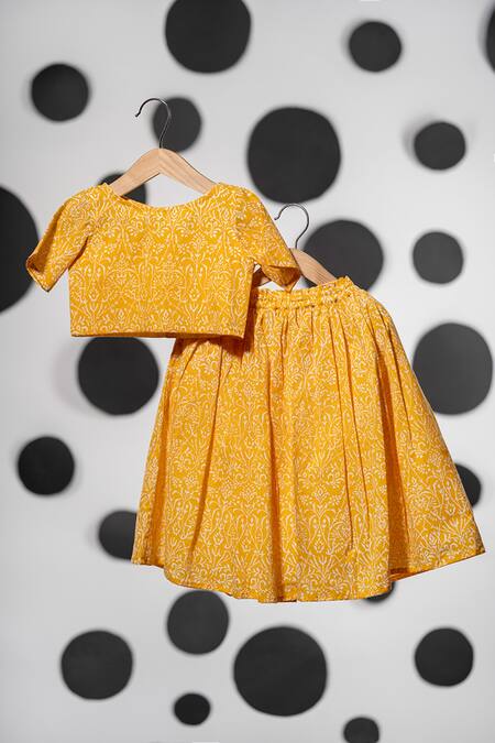 Buy_Love The World Today_Yellow Cotton Floral Print Lehenga With Blouse_Online_at_Aza_Fashions