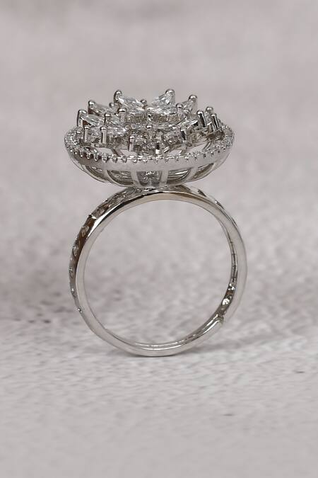 Silver Plated Diamonds Floral Studded Ring