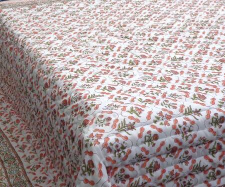 Peach Cotton Printed Florette Hand Block Quilt