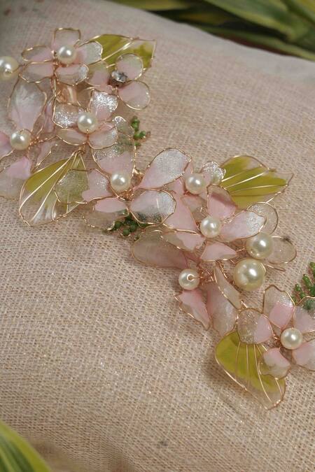 Cluster of floral designs with pearl accents, Intricate detailing with resin leaves, Delicate wire construction for flexibility