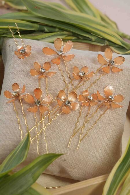 Floral carved detailing on each pin, Pearl and stone embellishments add elegance, Wire accents for added texture
