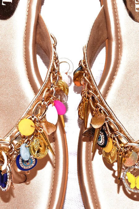 Buy_Foot Fuel_Gold Ardor Charm Embellished Flats _at_Aza_Fashions