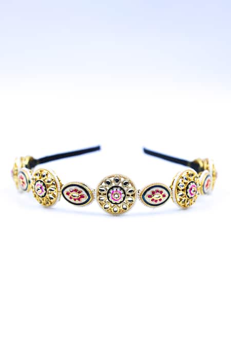 Gold Crystals, Beads, Brooches Carved Floral Embellished Hairband