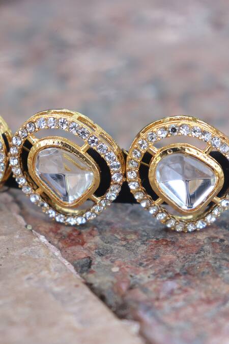 Buy_Foot Fuel_Gold Beads, Crystals Circular Studded Brooch Hairband _at_Aza_Fashions