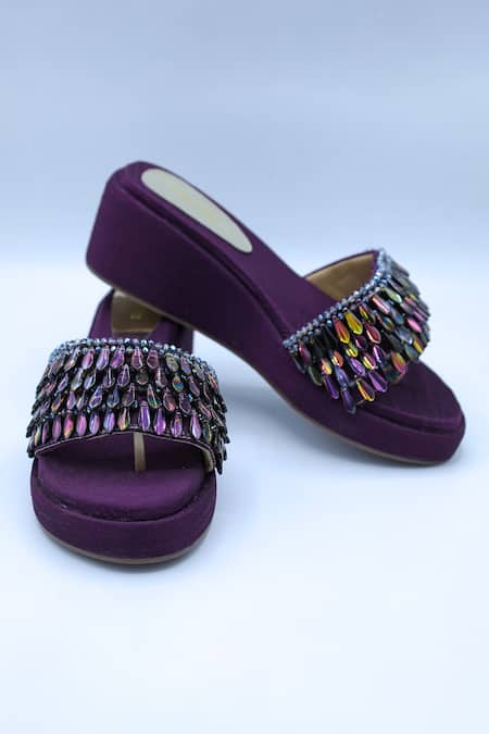 Buy_Foot Fuel_Purple Beads Clustered Crystal Embellished Wedges _at_Aza_Fashions