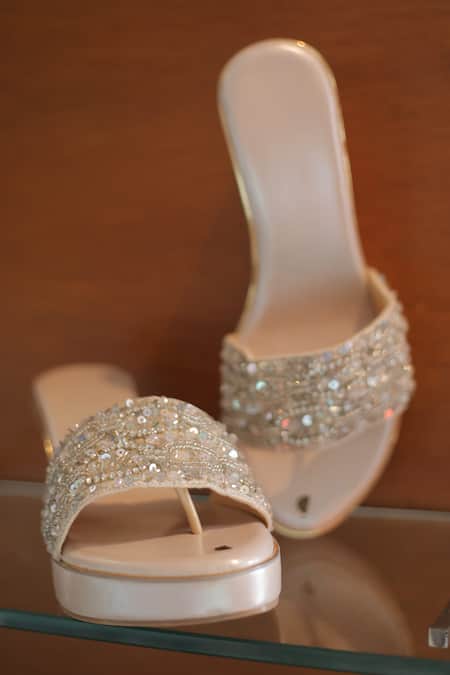 Gold wedges featuring knotted diamonties and salli work with silver sequins embellishments