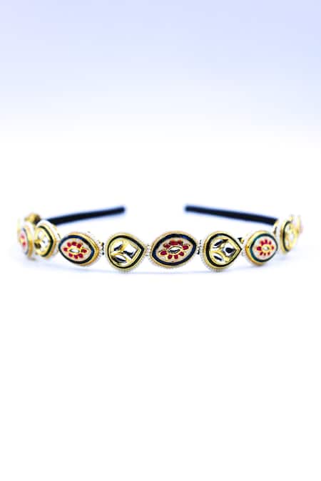Gold geometric carved brooch hairband featuring beads and crystals embellishments
