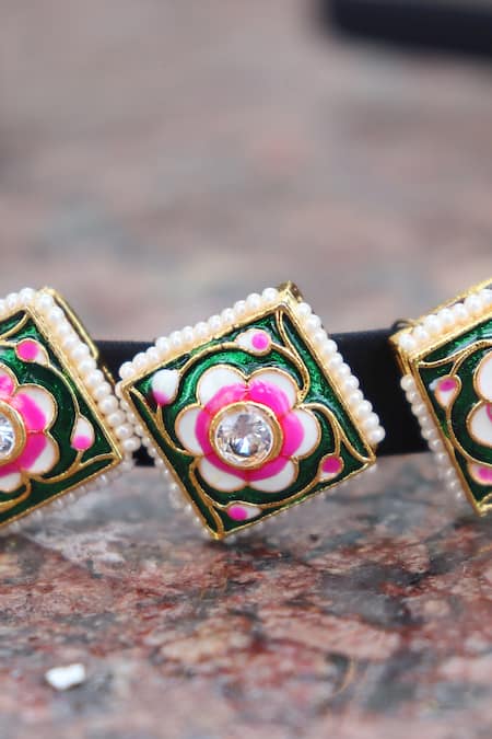 Buy_Foot Fuel_Gold Beads, Embroidery Floral Meenakari Brooch Hairband _at_Aza_Fashions