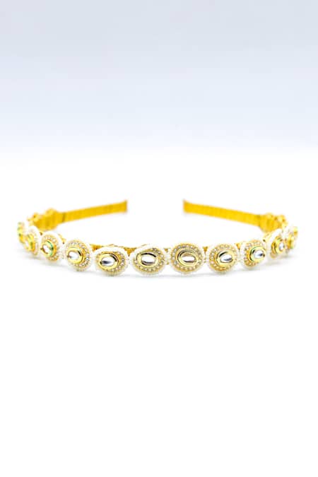 Gold Crystals, Beads Graceful Halo And Studded Hair Band
