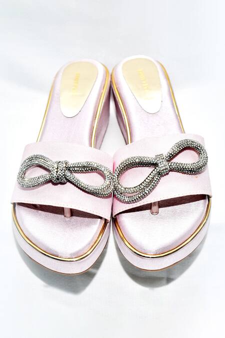 Buy_Foot Fuel_Pink Crystals Mini Love Strap Embellished Wedges _Online_at_Aza_Fashions