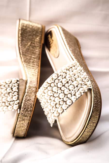 Buy_Foot Fuel_White Pearls Work Platform Wedges _Online_at_Aza_Fashions