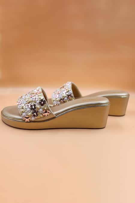 Gold Sequins, Beads, Zari Valentina Embellished Wedges