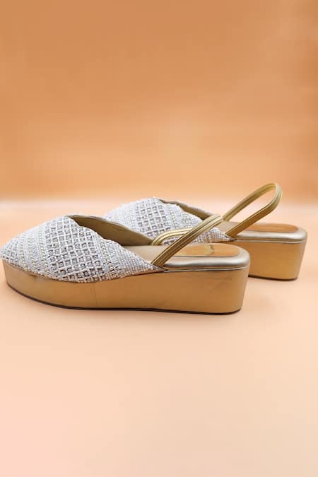 White Cut Work, Beads, Zari Embellished Mules