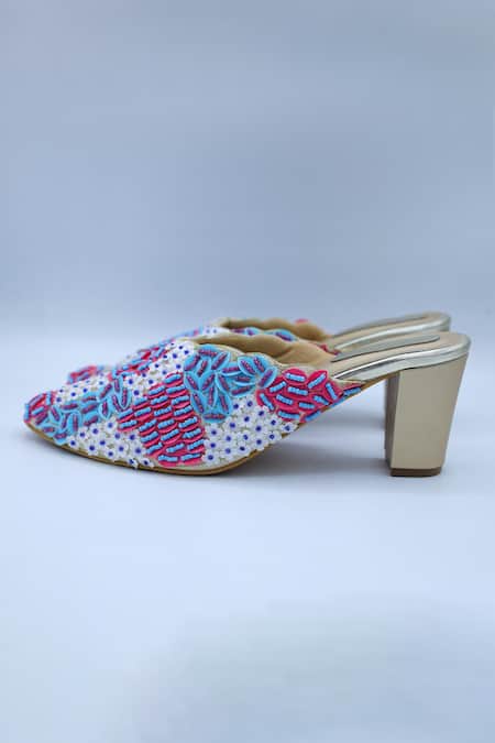 Multicolor heels featuring anchor thread, sequin applique, and zardozi embellishment