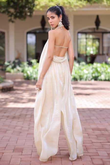 Cream Organza Halter Neck Designer Soft Jumpsuit