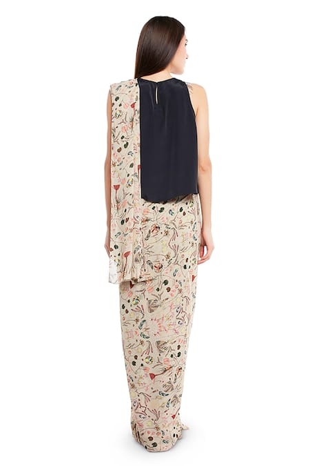 Beige Saree Art Georgette Printed Forest Round With Top
