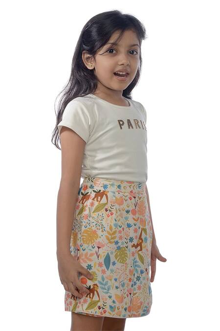 Buy_Miko Lolo_Multi Color Organic Cotton Satin Leaf Motifs, Flower Forest Print Shorts Set_Online_at_Aza_Fashions