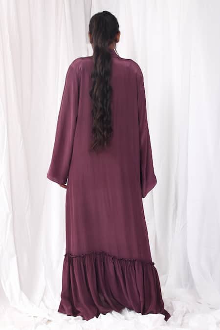 Purple Crepe Shawl Neck Frill Hem Long Jacket