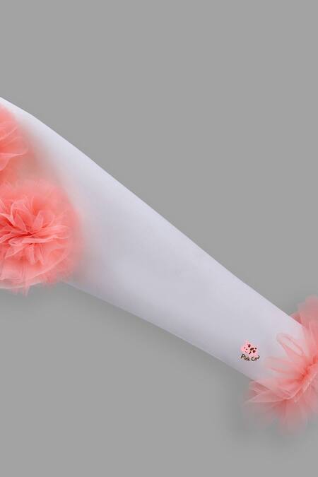 White scuba shrug with net frilled cuffs & floral pompom flower embellishments.