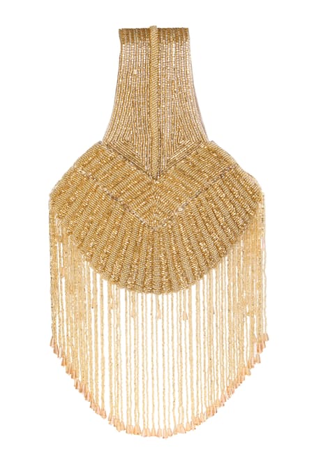 All over tonal beads embellishments, Gold tassels for added flair