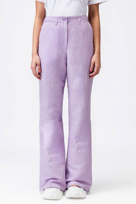 Lilac flared trouser featuring belt loop detailing and side pockets