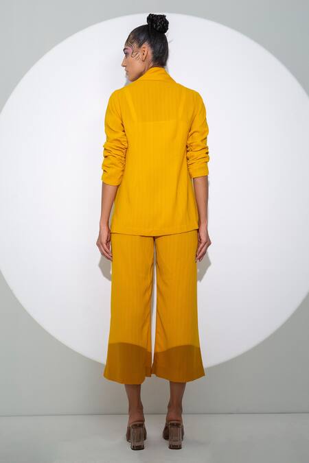Buy_Pocketful Of Cherrie_Yellow Crepe Collared Full Sleeve Lapel Jacket_at_Aza_Fashions