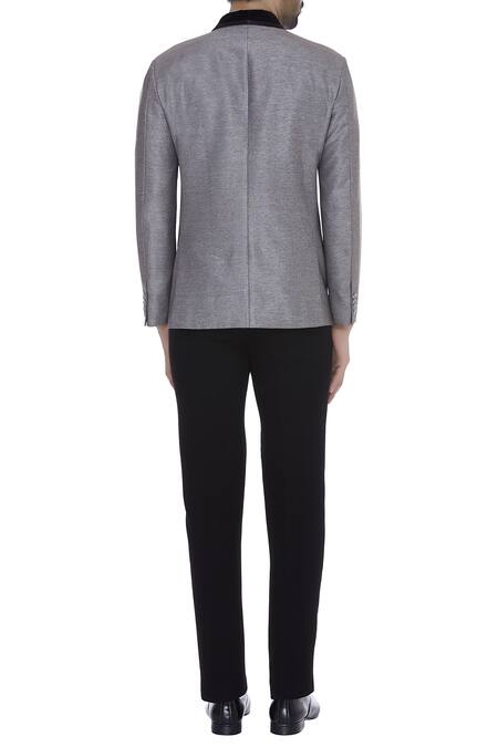 Grey Blended Micro Wooven Cupro Full Sleeves Blazer Jacket With Trouser