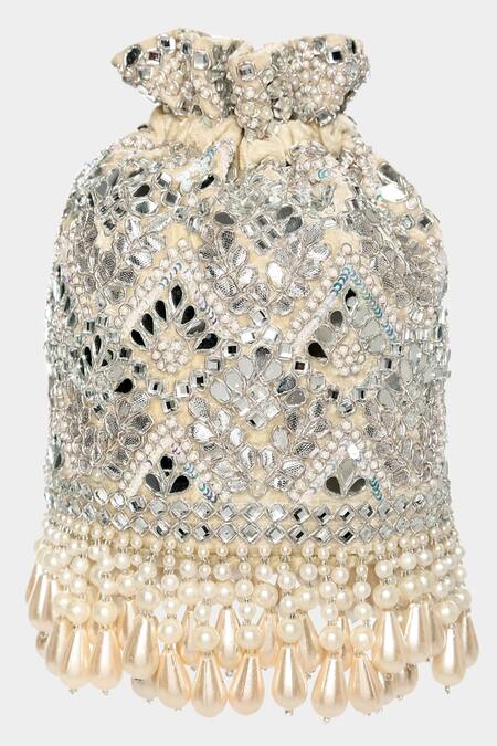 White Pearls, Sequins Gabriella Velvet Bucket Bag