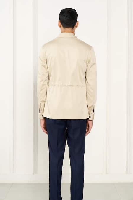 Beige shacket made from 100% cotton featuring a button-down front and two chest pockets