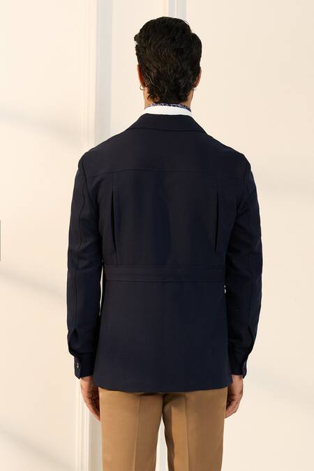 Blue Polyester, Viscose, Lycra Designer Shacket
