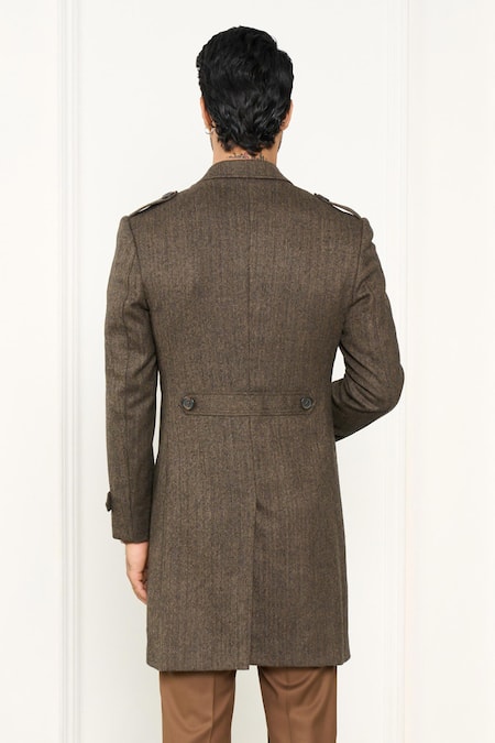 Brown Wool Herringbone Long Coat