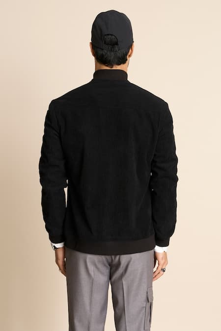Black Corduroy, Polyester, Viscose Bomber Jacket