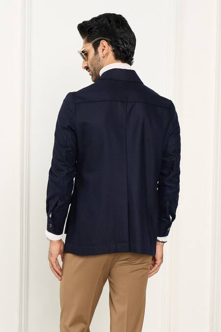 Buy_Gargee Designers_Blue Wool Designer Flannel Shacket _Online_at_Aza_Fashions