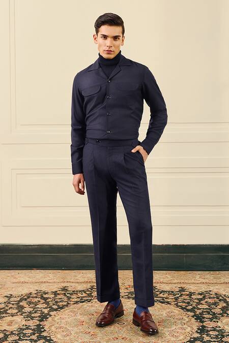 Navy Wool, Flannel Shirt And Pleated Pant Set