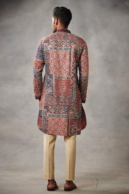 Multicolored kurta with floral printed motifs, sequin work & mandarin collar. Paired with pant.