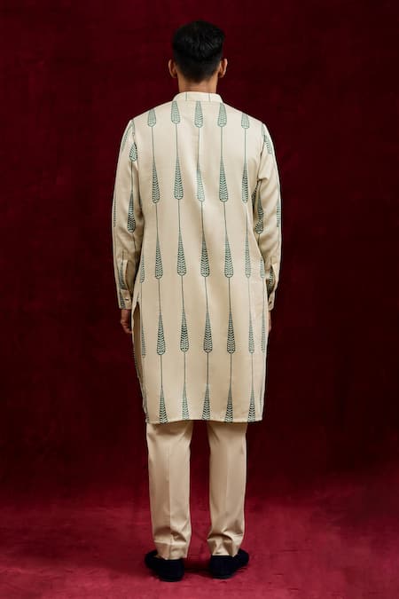 Ivory kurta featuring all over hand painted abstract leaves in olive