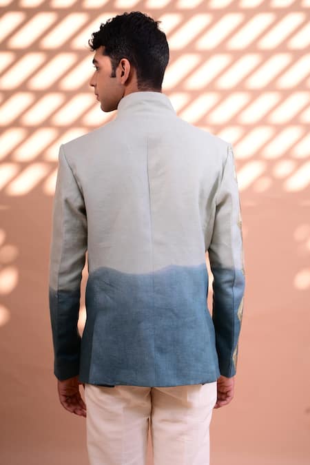 Aqua ombre bandhgala with sequin work. Comes with straight pants.