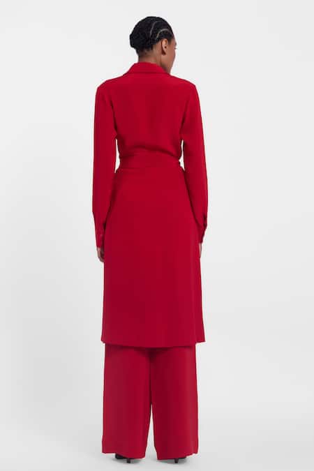 Buy_Gauri & Nainika_Red Crepe Embroidery Collared Botanical Shirt Dress With Belt _Online_at_Aza_Fashions
