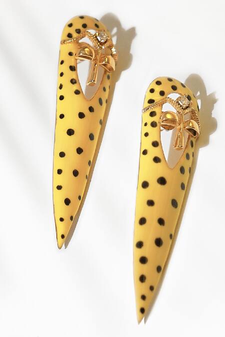 Buy_Outhouse_Yellow Crystals Gavi Spicule Kaybug Earrings _at_Aza_Fashions