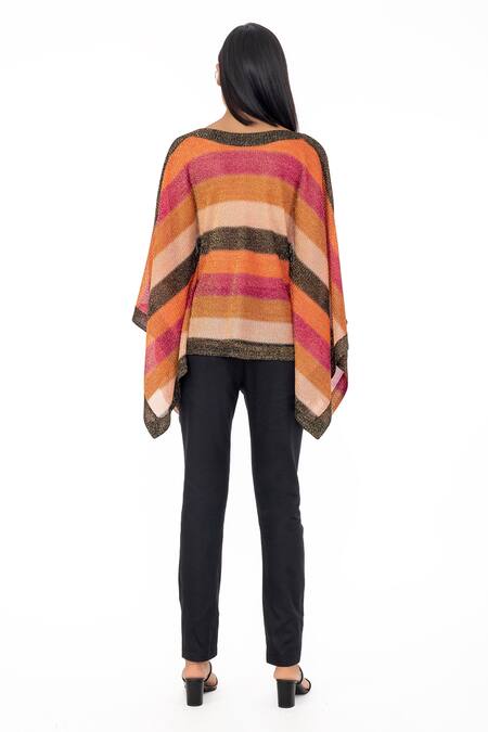 Multi Color Crochet 85% Lurex 15% Striped Kaftan Top