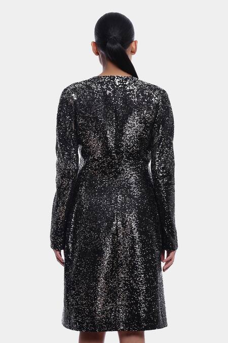 Black jacket-style dress with all-over sequin work & seam pocket.