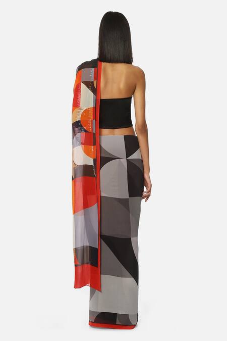 Multicolor embellished saree with geometric pattern. Comes with running blouse.
