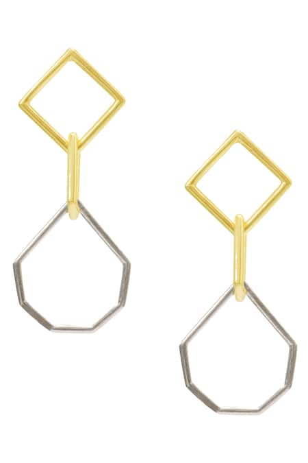 Gold and silver plated earrings featuring a geometric shape inspired design