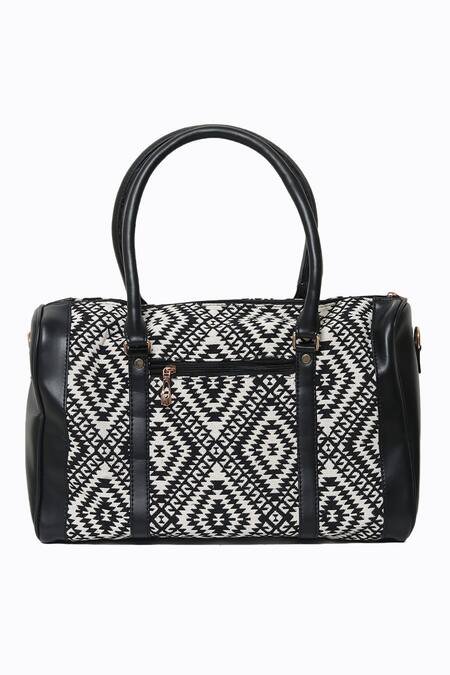 Double handle strap for easy carrying, Geometric pattern adds a modern touch, Zipper closure for secure storage