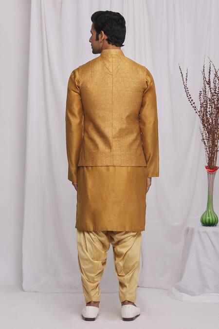 Gold Semi Silk Moonga Geometric Print Nehru Jacket